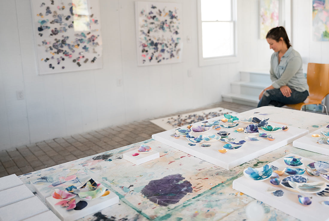 Elisa Sheehan’s art is an invitation to consider the fluent language of nature, the beauty in the broken, and the symphony of color and shape gifted to us by the world itself. She creates custom work for the joy seekers of the world and the spaces that aim to uplift.