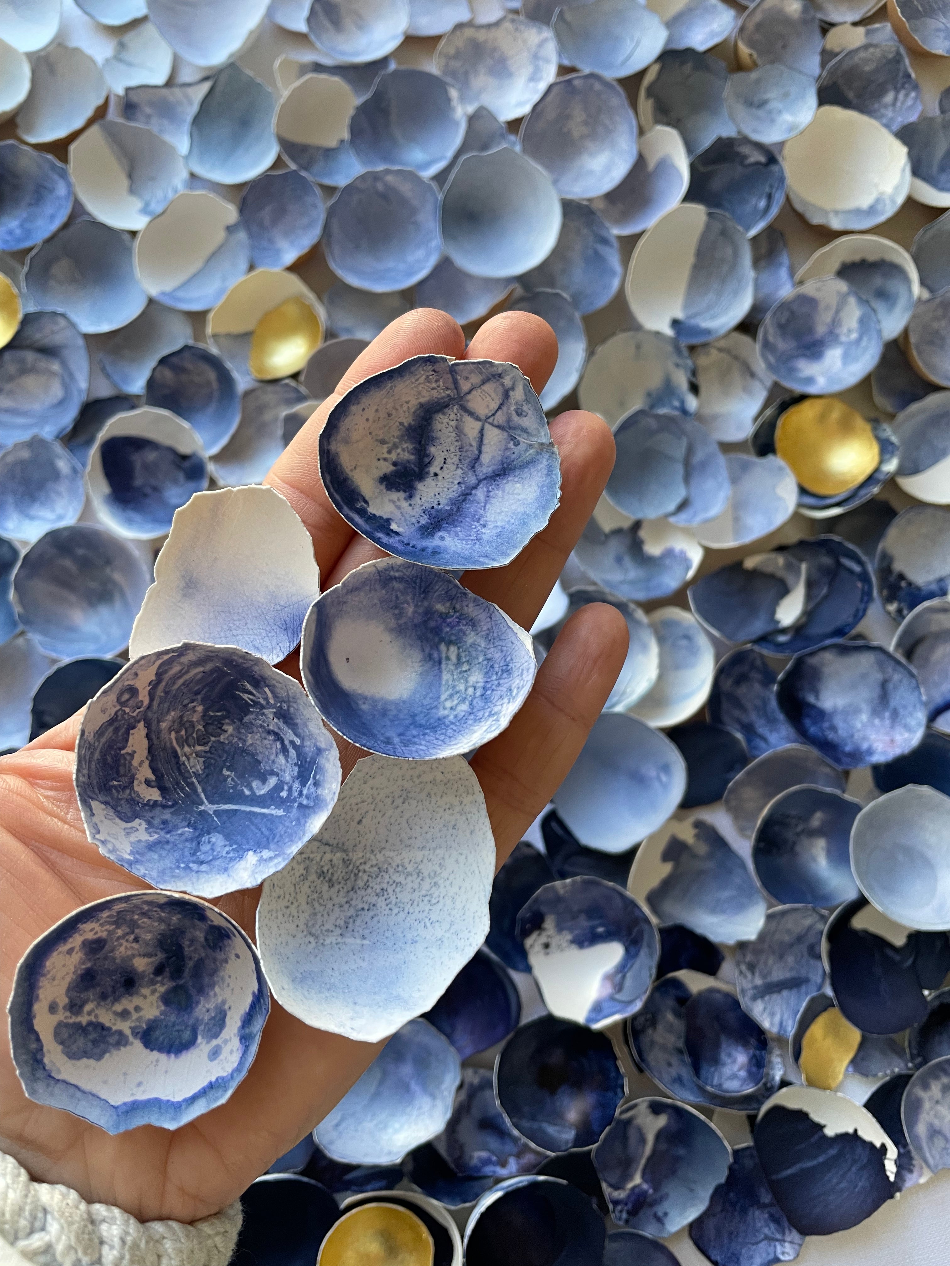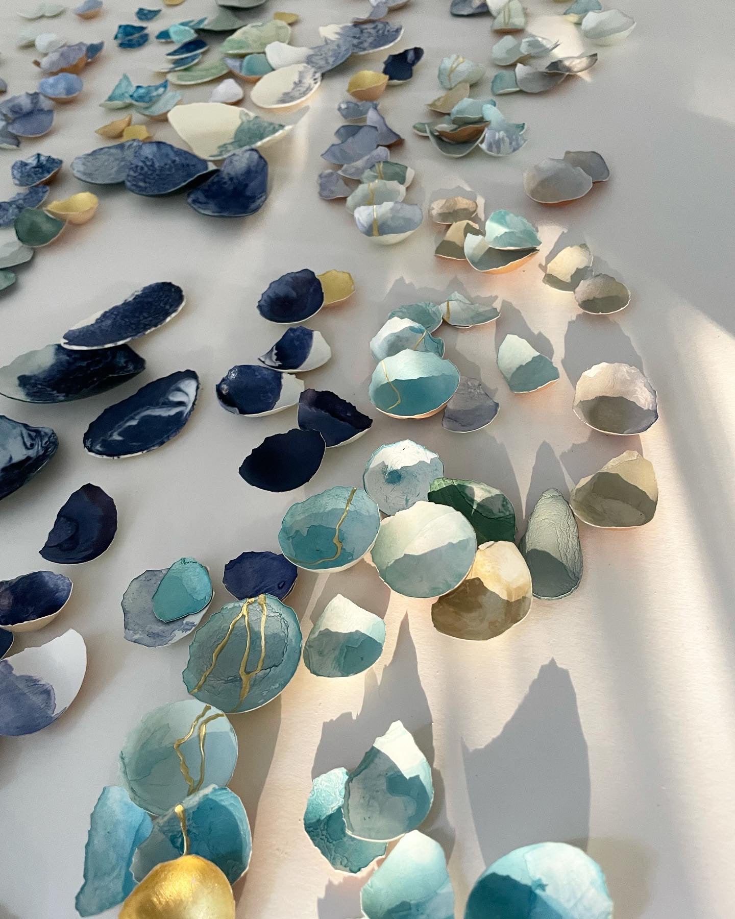 Elisa Sheehan's art spans across mediums from fine art painting to kintsugi-inspired eggshell installations.