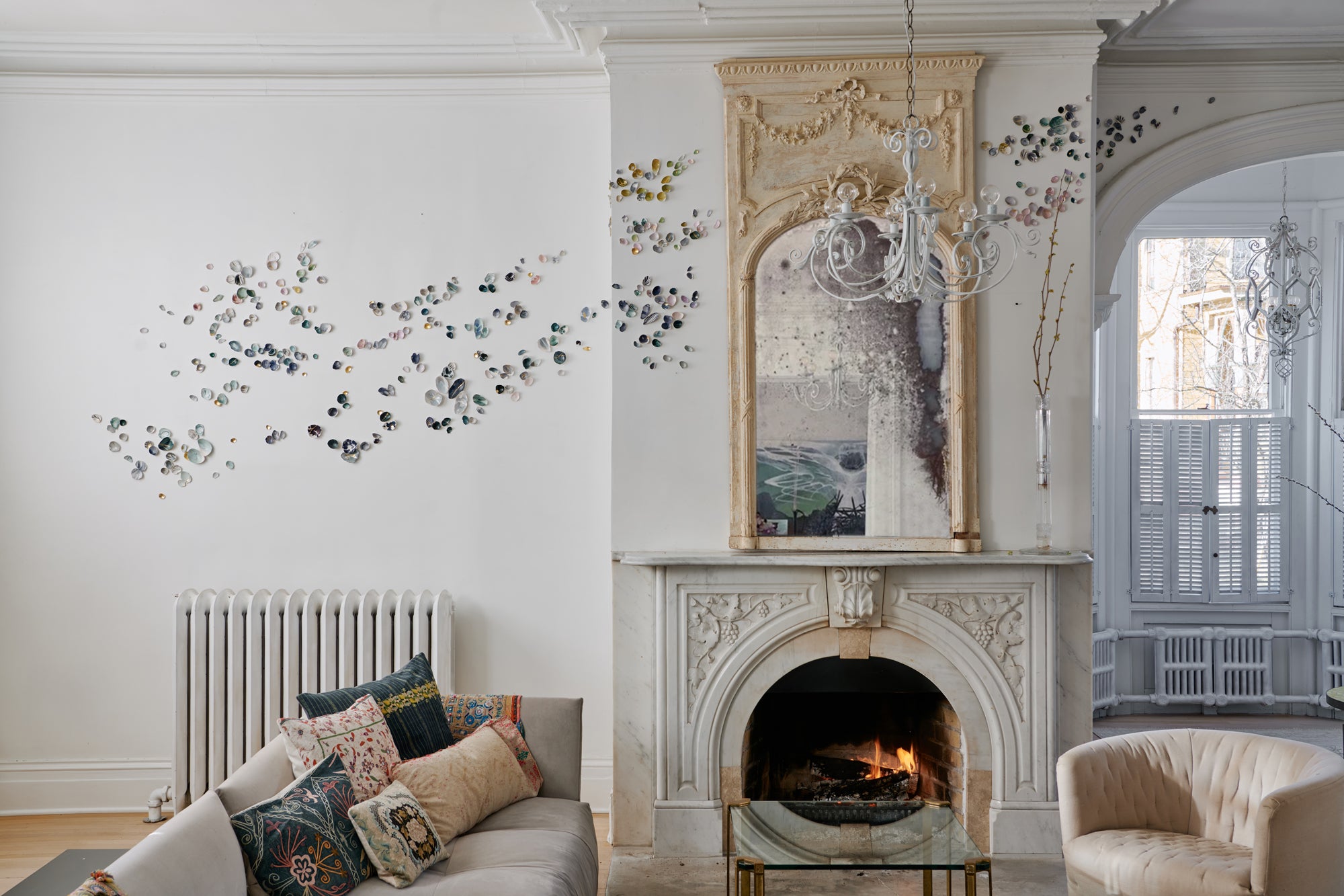 Framed real eggshells and site-specific porcelain eggshell wall installations.