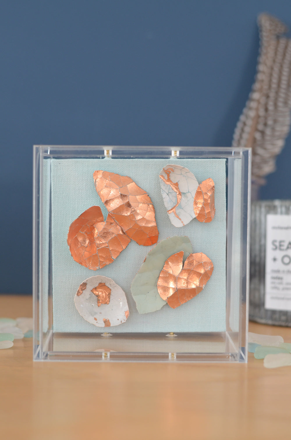 Gorgeous framed art for your home or for gifting, each eggshell is painted individually, and gold metal leaf is applied to represent the repairs that are typically made to pottery by kintsugi artists.