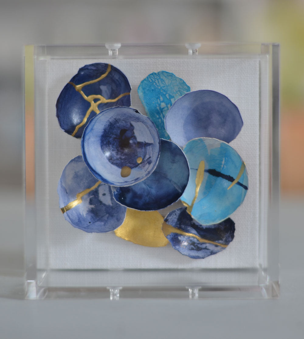 4" x 4" Blues + Gold Mini Kintsugi Eggshells #267