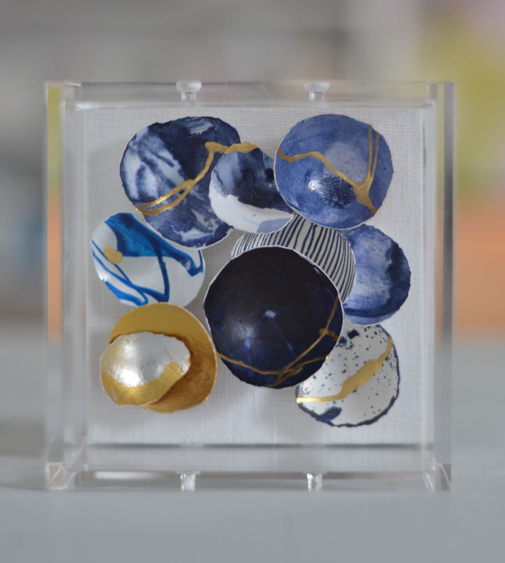 Working from the beautiful concepts of kintsugi, Elisa creates a visual interpretation of that craft in eggshells.