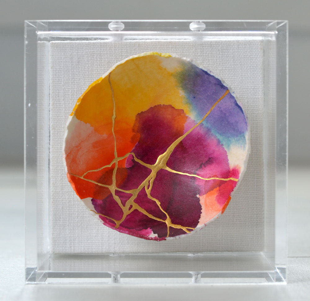 I’ve always loved the Japanese art of “kintsugi” wherein broken pottery is repaired with gold and rather than trying to disguise the break or flaw, it is highlighted and therefore elevated to a status of beauty. Its age is celebrated, its history is seen, its flaws are revered. I think it’s a good way to think about ourselves, others and our relationships as we age - not to try to look like our former, younger selves but to embrace our “breaks and flaws” and to honor them and see the beauty in them. Working from this beautiful concept, I've created a visual interpretation of it within these eggshells.