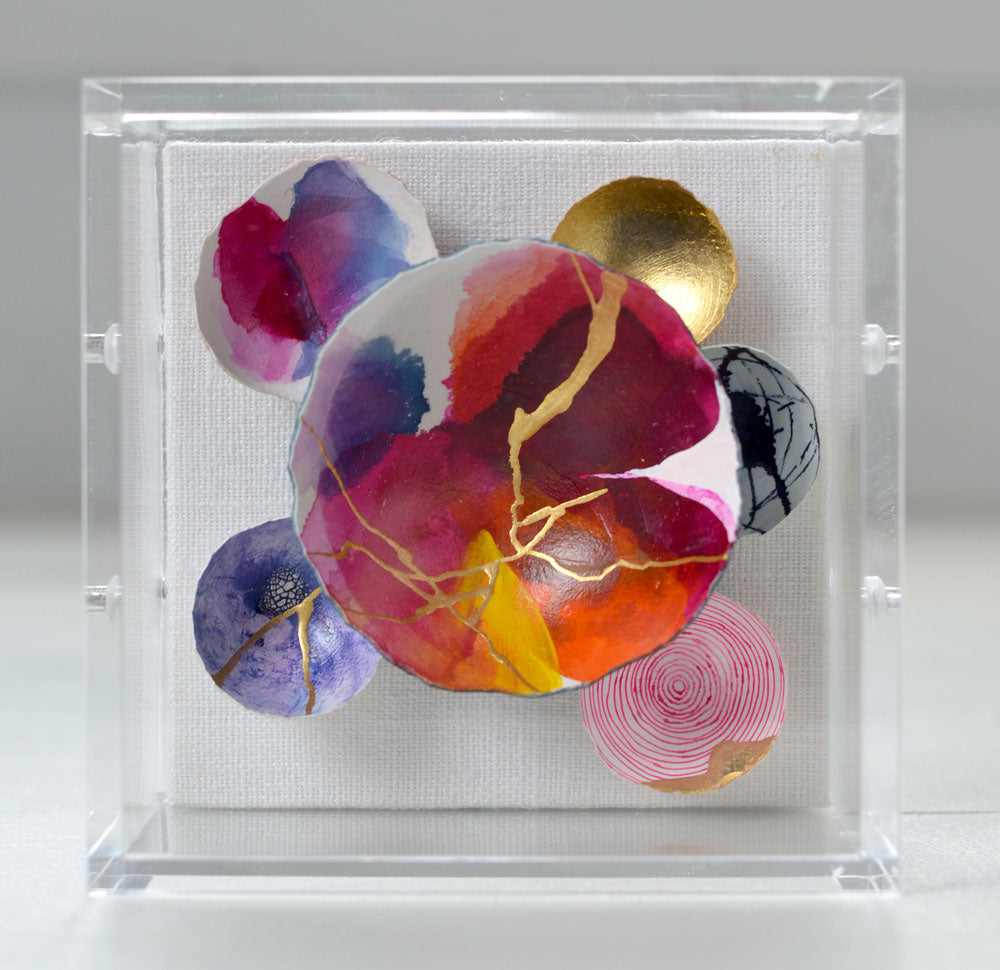 I’ve always loved the Japanese art of “kintsugi” wherein broken pottery is repaired with gold and rather than trying to disguise the break or flaw, it is highlighted and therefore elevated to a status of beauty. Its age is celebrated, its history is seen, its flaws are revered. I think it’s a good way to think about ourselves, others and our relationships as we age - not to try to look like our former, younger selves but to embrace our “breaks and flaws” and to honor them and see the beauty in them. Working from this beautiful concept, I've created a visual interpretation of it within these eggshells.